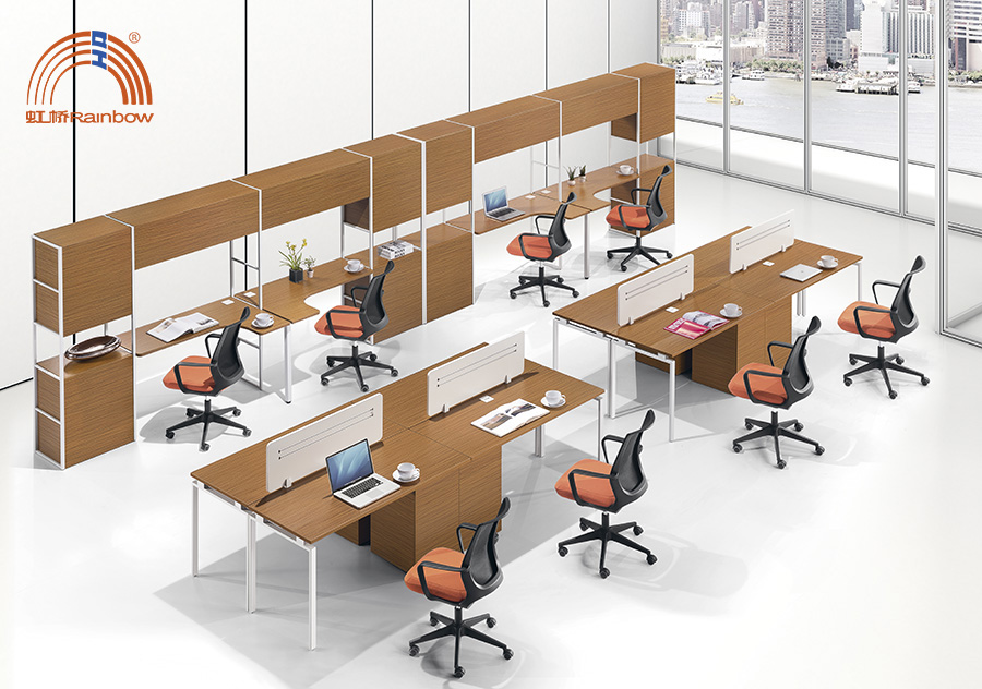 普通職員辦公桌椅可以擺放四人位的屏風辦公桌,具體根據公司的辦公環境而定。若是人員較多可以擺放板式桌上屏辦公桌。
